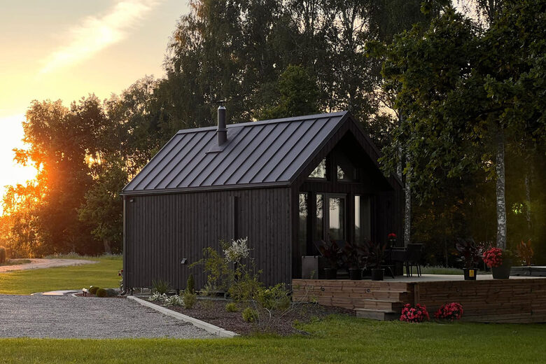 A modern design concept holiday home built in 2024 - in a rural area without neighbors. In Saldus region, designed for up to 4 people, with a sauna and an outdoor hot tub.