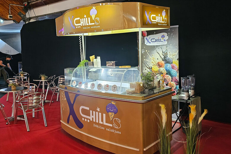 Interaktīvā projekcija un paštaisīts dabīgs saldējums un sorbeti.