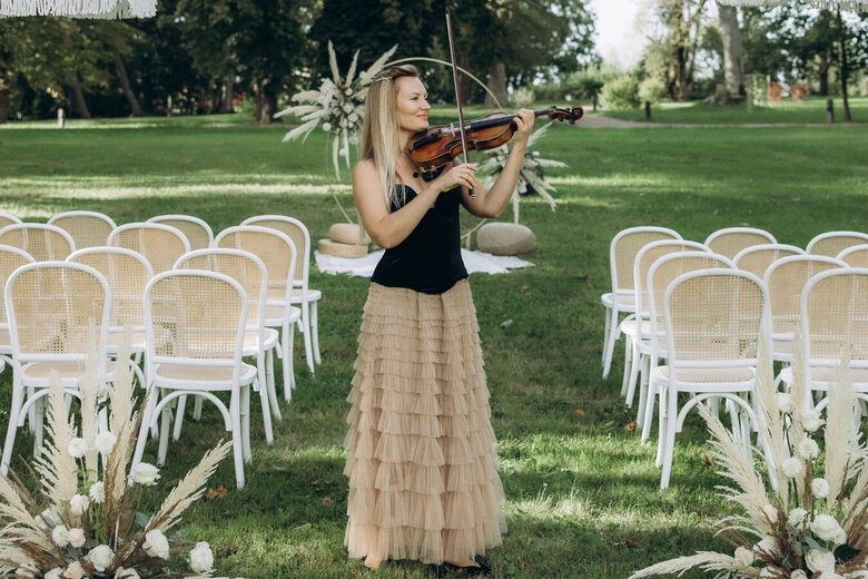 Latvijas Nacionālās operas vijolniece, kas ik gadu bagātina vairāk nekā 40 kāzu ceremoniju, radīs īpaši elegantu, ekskluzīvu un romantisku atmosfēru jūsu svētkos.